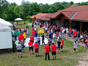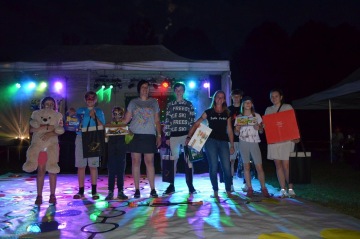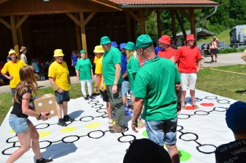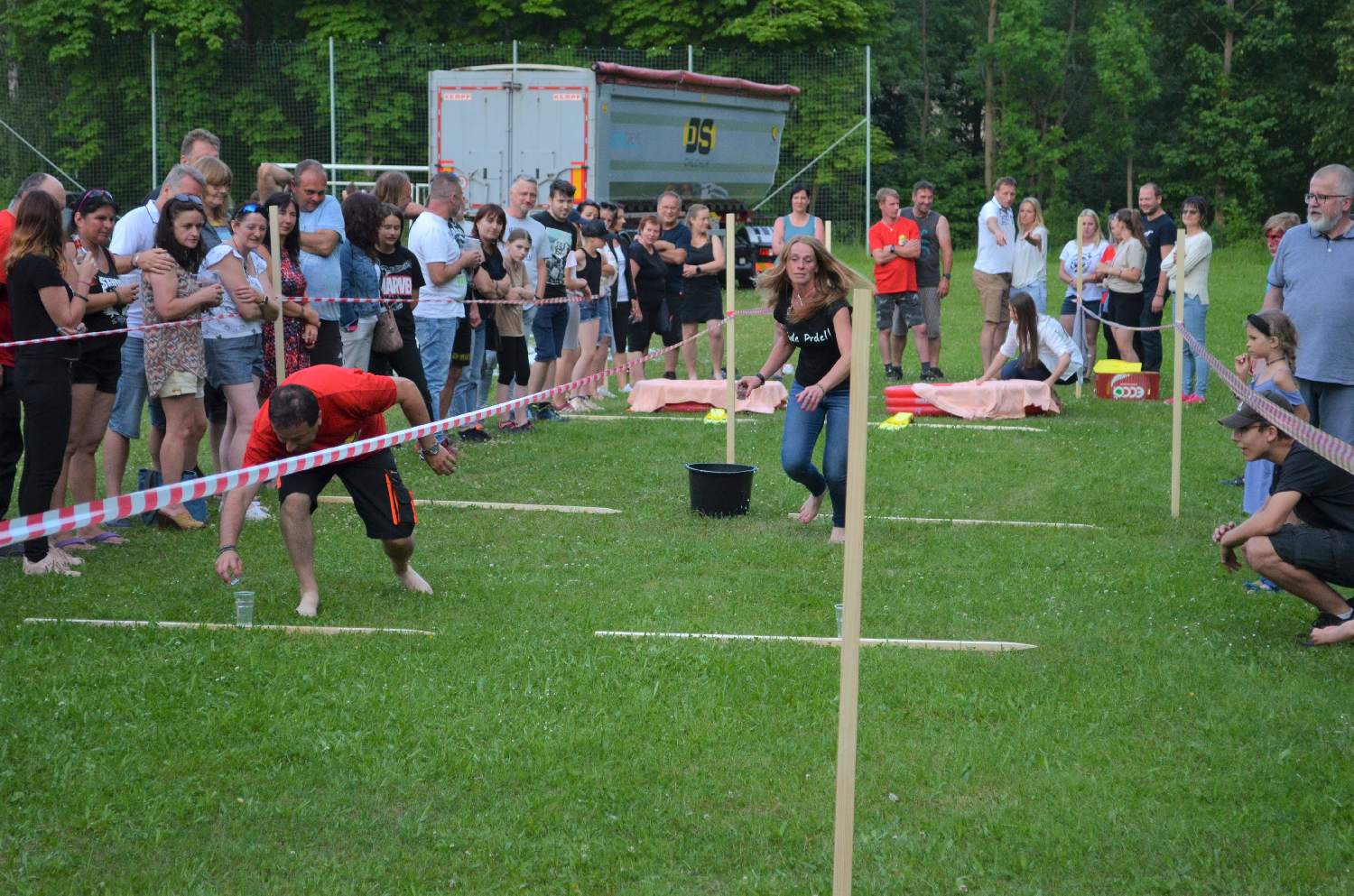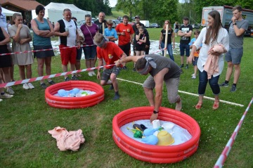 z bazénku s šátkem přes oči, pokračovali během s potápěčskou ploutví, aby poté panáky naplnili vodu do kelímku. Na samý závěr udělali 6 otoček okolo tyče a trefovali se balónkem do kýblu. Soutěž konaná během pozdního odpoledne přilákala mnoho hráčů, na které čekali různé odměny.