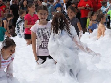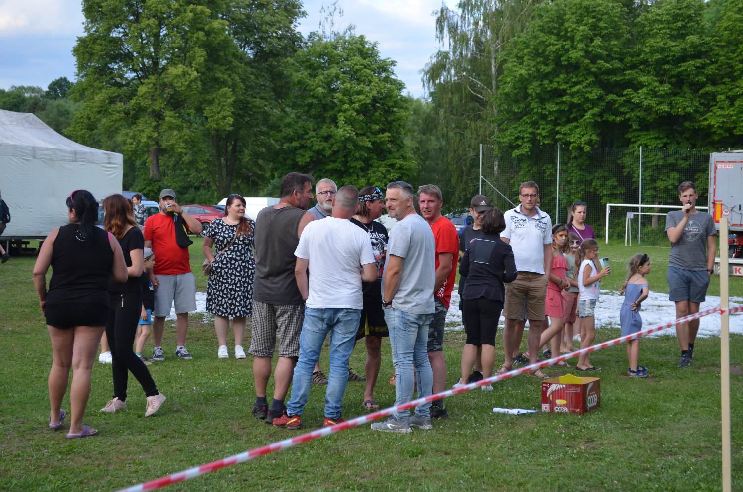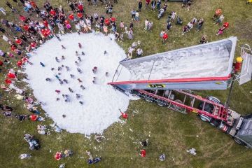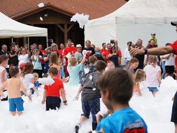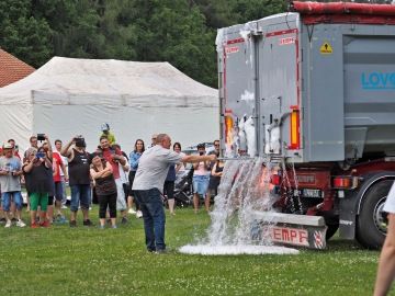 Dalším překvapením byl kamion naložený tou nejjemnější frakcí - pěnou. Náklad plný radosti nám přivezl sám pan šéf s paní šéfovou. Pěnu nám odborně namíchali hasiči z Košťálova.