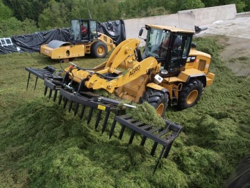 Od 21. do 25. května jsme testovali kloubový nakladač Caterpillar 930K Agro s pětimetrovými vidlemi na rozhrnování řezanky a silniční válec Caterpillar CS74 (jako alternativní náhradu za 40 let staré stroje Škoda 180). Techniku na sklizeň pícnin máme relativně obnovenou a výkonnou, ale chceme sklizeň ještě více urychlit.