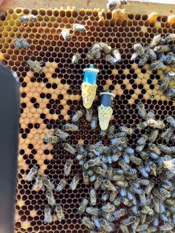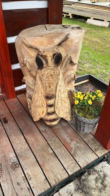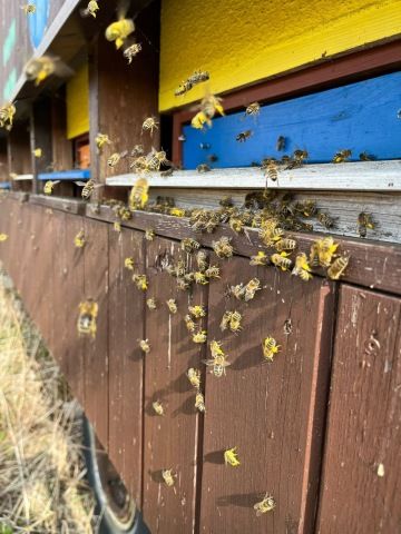 S radostí jsme přivítali krásný dar od souseda Pepy – dřevěnou sochu včely, vyrobenou panem Holcem ze Mříčné. Tato dřevěná včelka se stala nejen ozdobou naší včelí farmy, ale také symbolem síly a odhodlání naší včelařské komunity, která se stále rozrůstá. Tímto mezi sebe oficiálně vítáme nového člena, Pepu Chuchlíka mladšího, který se pod vedením zkušeného mistra Jirky Horáčka už začal zapojovat do péče o naše včelky.
