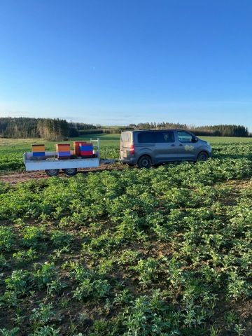 A protože pro naše včelí království děláme maximum, pořídili jsme si ještě kočovnou káru. Tu jsme již zapřáhli a převezli jsme úly na 30 hektarové pole s řepkou, která poskytuje včelám velmi výživný pyl a nektar bohatý na cukry. Po odkvětu řepky se s včelkami vypravíme k voňavému lesu, kde budou moci sbírat pyl pro výrobu lahodného medovicového medu.
