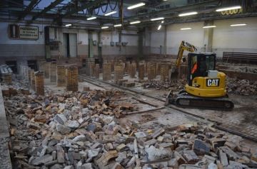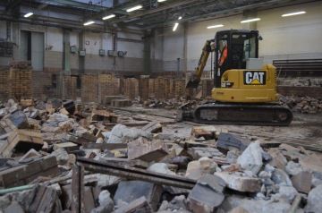 V Semilech divize zemních prací demoluje podlahu výrobní haly.