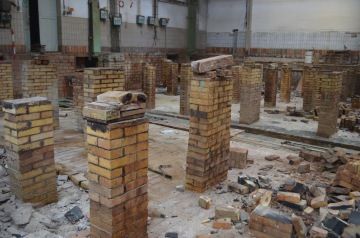 V Semilech divize zemních prací demoluje podlahu výrobní haly. Podpěrné cihelné sloupy jdou k zemi, o to se stará CAT 305E2 CR, využit je i manipulátor JCB 541-70, který naváží do haly nový materiál. Práce směle pokračují a brzy bude hala připravena na novou éru své funkčnosti.