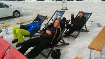 Jelikož nás má šéf opravdu rád, pečuje o naši fyzickou a společenskou kondici. Proto pro nás, již po několikáté, uspořádal lyžařský zájezd do rakouských Alp, za což mu patří veliké dík. V pátek, velmi brzo ráno, jsme naskákali do aut a nabrali směr Saalbach.
