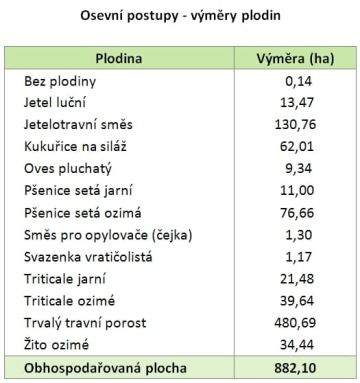 V minulém týdnu jsme dokončili setí a v níže uvedené tabulce si můžete prohlédnout skladbu plodin spolu s výměrou pro letošní rok. Celková obhospodařovaná plocha činí 882,1 ha. Fotografie ze setí kukuřice naleznete na následujícím odkazu Setí kukuřice.
