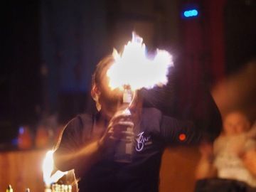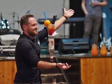 Svůdné tanečnice a ohnivá barmanská show nás pěkně rozpálily a v ledovém baru jsme se mohli naopak příjemně zchladit. V již tradičním fotokoutku se pobaveně módil medvěd za medvědem a odnášel si opravdu povedené originální kousky. Tým ze Scolarestu se staral o plná bříška a nám moc chutnalo, páč na stole nezbyl ani drobeček. S/NAD/VÁHOU jsme si hlavu nedělali, hráli opravdu skvěle.