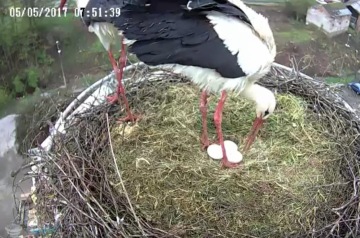 Náš čapí páreček do toho tento týden "praštil" a podařilo se jim snést do hnízda ke dnešnímu dni již tři vejce! Teď je budou oba dva po dobu zhruba 33 dní zahřívat. Doufáme, že se to našim čápům podaří a my se budeme těšit, že za měsíc na nás budou z hnízda pokukovat hravá mláďata :)