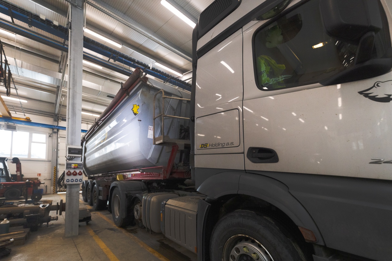 a znovu v nové dílně v Kundraticích. Kromě běžného servisu brzd a náprav zde opravujeme návěsy a na kanálech provádíme pečlivou kontrolu technického stavu, kterou všechny naše soupravy absolvují 1x za měsíc. Naši flotilu udržujeme v perfektním stavu. S nadsázkou můžeme říci, že je to taková klasika, kterou potřebují všechny kamiony a návěsy, ale nyní kompletně v novém.