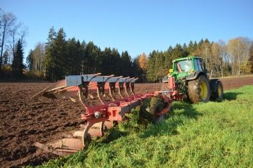 Pořídili jsme zánovní, polonesený, otočný 6ti radličný pluh PÖTTINGER SERVO 6.50 NOVA a hned jsme s ním šli vyzkoušet orbu na kundratických polích s našim traktorem John Deere 7530.