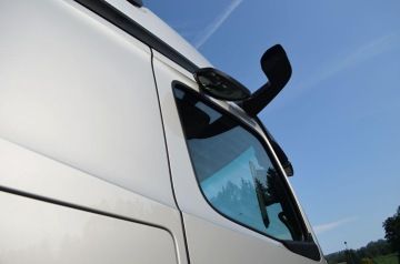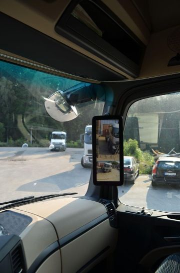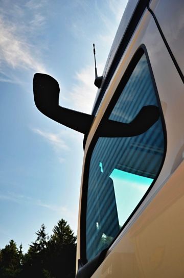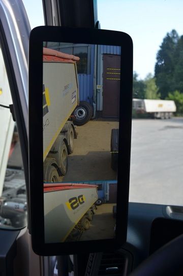 Na první pohled jednoznačně upoutají moderní ,,nezrcátka“. Místo vnějších zrcátek jsou nainstalované kamery, zpětný pohled nahradily obrazovky uvnitř kabiny umístěné na sloupcích, což má umožnit větší bezpečnost při výhledu z kabiny řidiče a celkový lepší přehled o dění za vozidlem. Perličkou je zapnutí venkovní kamery řidičem v odpočinkovém režimu přímo z lůžka, aniž by si toho případný zloděj všiml. Přístrojovou desku zdobí dva velké displeje. Na těchto displejích je možné nastavit velkou řadu funkcí přímo ovladačem na volantu.