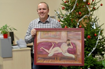 Na fotografii je zachycen náš pan Chuchlík, který se zúčastnil dobročinné dražby (výtěžek putoval do zmíněné organizace Borůvka Praha o.p.s.) a podařilo se mu ulovit toto skvostné dílo, na což je patřičně hrdý a jistě si ho vystaví do své kanceláře.