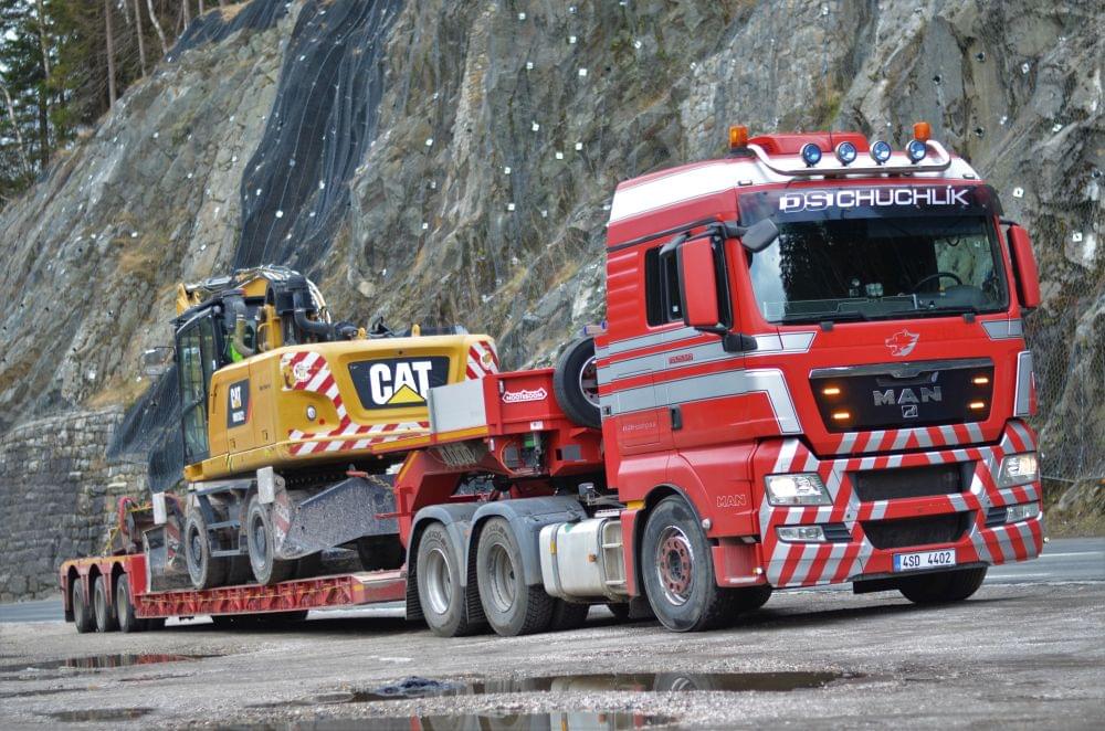 Od letošního roku jezdíme nově soupravou, kterou lze konfigurovat podle hmotnosti přepravovaného nákladu. Těžké stroje vypadají v akci velkolepě. Přesvědčte se.