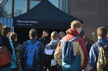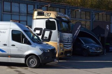 Jedno z našich největších dep a současně dílenské prostory s dvousměnným provozem, kde probíhá servis a plánované prohlídky techniky. Náš partner, Mercedes-Benz Hoffmann & Žižák, zde předváděl novinky v nákladní i osobní přepravě. Nejnovější tahač a elektromobily naznačovaly směr, kterým se doprava vydává.