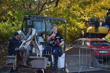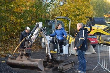 U nás známé také jako Heřmánkovna. A ano, měli jsme tam připravený čaj. Je to zázemí společnosti DS Agro Košťálov, které hospodaří na 800 hektarech zemědělské půdy v Podkrkonoší. Zde měli příležitost vyzkoušet si nejenom zemědělskou techniku. Připraveny tak byly traktory, řežačka Claas Jaguar a malé bagry. Cesty okolo dílen se proměnili v testovací polygon a na plac jsme navezli 2 hromady štěrku - všichni v sobě máme skrytého bagráka.