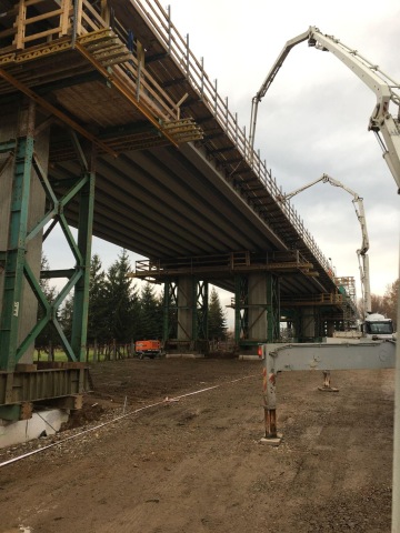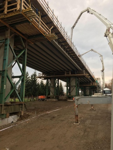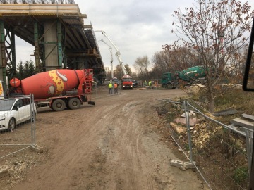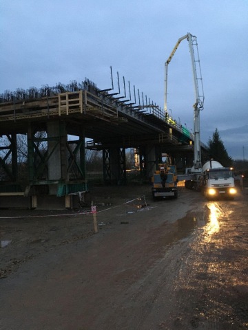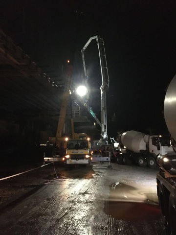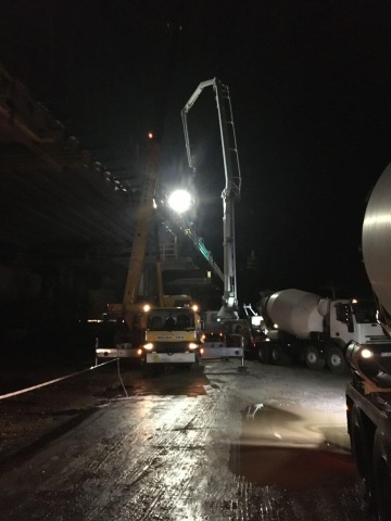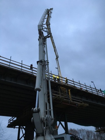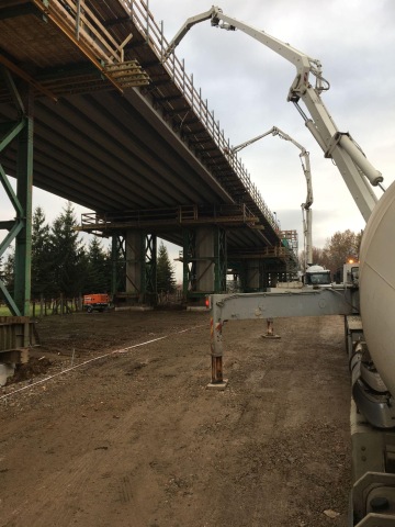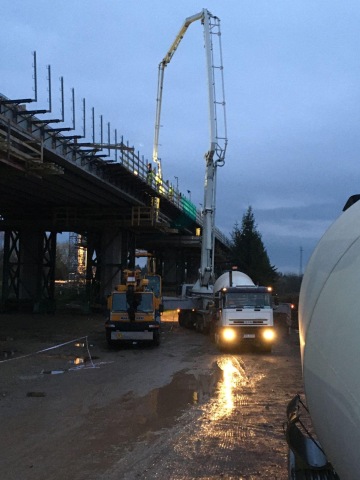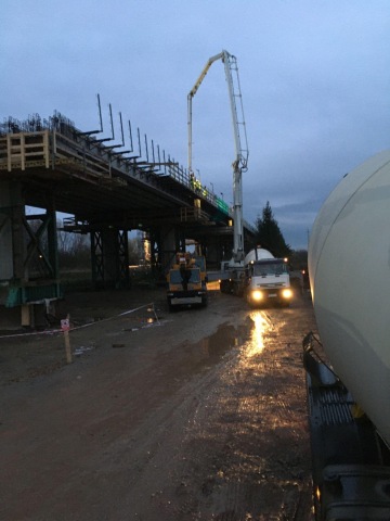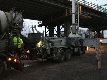 Ve dne v noci zajišťujeme transport betonu na stavbu nového mostu na velmi frekventované silnici I35.