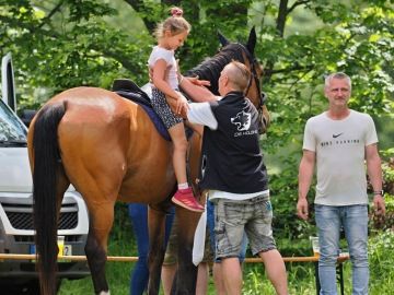 Dvě ségry Janička a Marťa přijely za námi se svými klisnami Vanilkou a Severkou. Po krátké úvodní exhibici měli děti i dospělí možnost svézt se na závodních konících - poníkovi Severce a českém teplokrevníkovi Vanilce. Děkujeme za uskutečnění super atrakce Janičce i Martičce a našemu řidiči a tatínkovi obou holek Vláďovi V.!