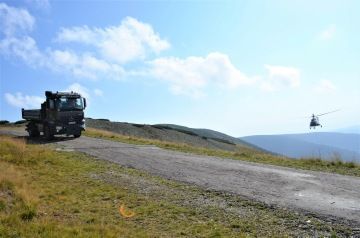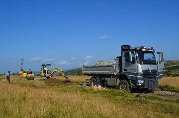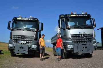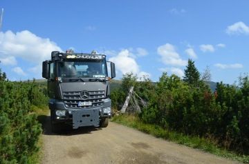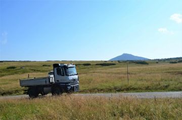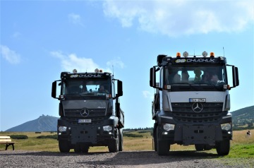 Téměř po roce jsme opět za krásného počasí naváželi žulu pro renovaci chodníků pod Sněžkou. Tohle místo je super a naši řidiči se vážně mají čím kochat. I turisté měli atrakci, když se naše náklaďáky míjely s helikoptérou, která na vrcholkách hor taky pracovala. No, podívejte se sami...
