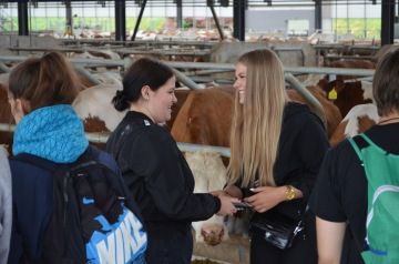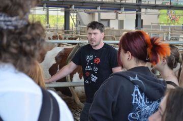 Teorie je vždycky důležitá, ale jak to chodí v praxi? Představili jsme studentům stáj se vším všudy. Exkurzí s praktickým i odborným výkladem je provedli naši zootechnici Ing. Michaela Paldusová, Ing. Lukáš Štěrba, Eva Havlová a Martina Princová. A že je to vskutku zaujaté publikum z oboru jsme poznali hned na první pohled. Soustředěnost a četné zvídavé otázky typu: "Jak probíhá porod? Jaké nemoci u telat evidujete? Na jakém základu léčíte krávy?", ale padly i hlubší dotazy jako: "Kdybyste stáj stavěl znovu, co byste udělal jinak?", nás přesdvědčily, že prohlídka naší stájí studenty zajímala a že čas, který jsme jim věnovali měl skutečně smysl.