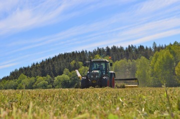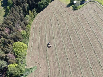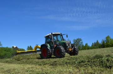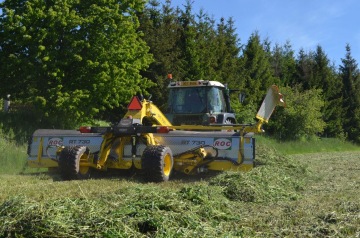 Model RT 730 značky ROC je dvousekční nahrabovač určený pro menší a střední farmy - tudíž na pozemky tady v Podkrkonší jako dělaný