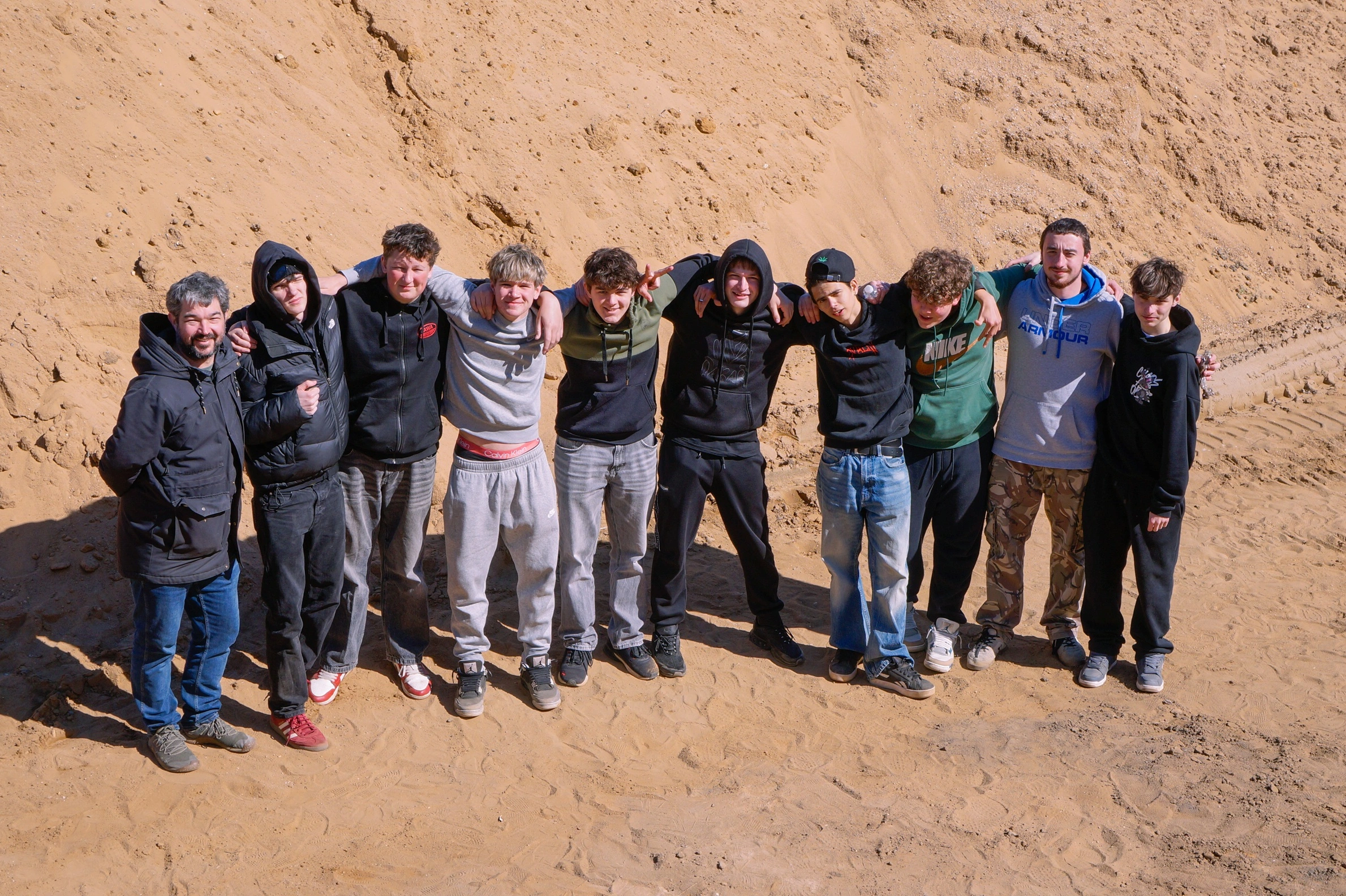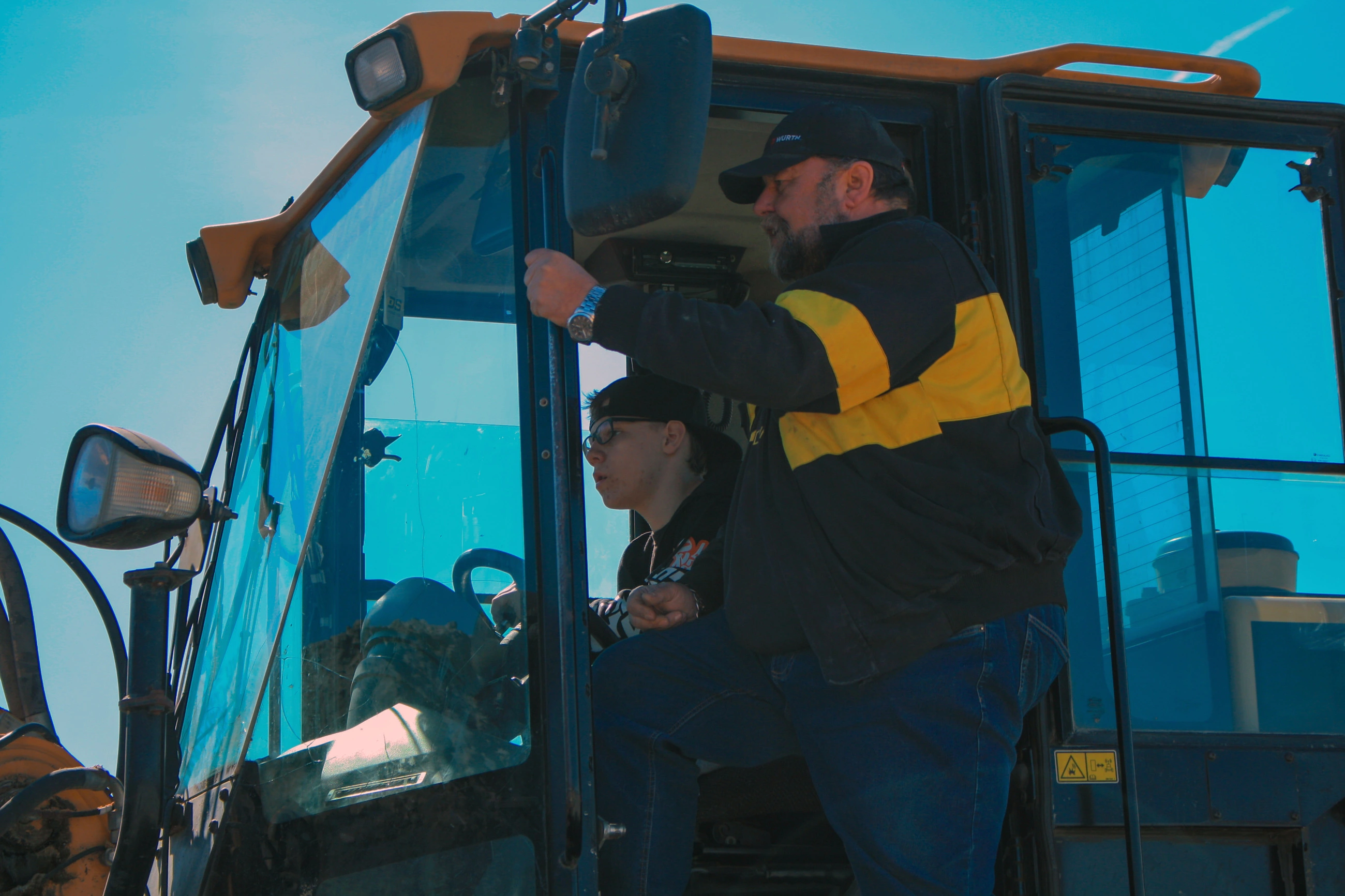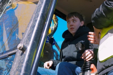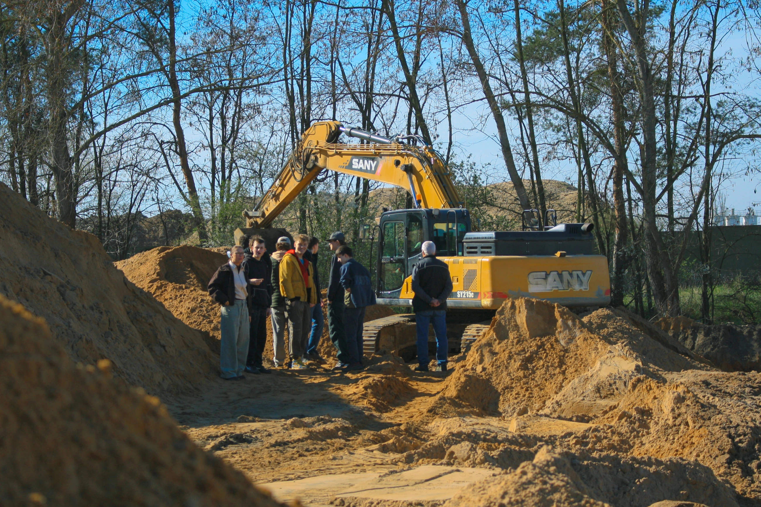 Zkouška těžké techniky v praxi je vždy jedním z hlavních taháků našich projektových dnů. Na "pískovišti pro velký kluky" s 25tunovoým pásovým rypadlem SANY si chlapci vyzkoušeli, že přesné překládání písku z místa na místo není o hrubé síle, ale o citu a preciznosti. Podobné to bylo u čelního kolového nakladače – naložit a vyložit materiál tak, aby souprava mohla bezpečně odjet, vyžaduje chladnou hlavu a dobrý odhad.