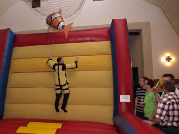 Tak a teď ve zkratce, co jsme všechno za ten večer stihli. Nejdřív se skákalo do výšky na atrakci zvané "moucha". Svou mrštnost nám ukázalo skoro čtyřicet soutěžících, jak z řad mužů, tak po počáteční nesmělosti i z řad žen. A že jim to ale šlo!
