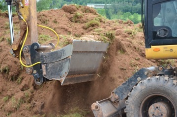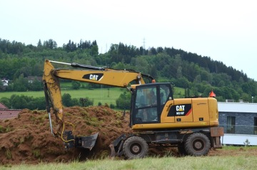 Na místě zajišťujeme všechno potřebné – od precizní práce bagristy, který se nám prokopal až na samý vrchol své vykopané hromady. Až po neúnavné řidiče, kteří těch pár (čti desetitisíce) kubíků hlíny trpělivě převozili.