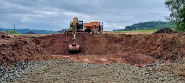 Od června 2024 jsme aktivně zapojeni do zemních prací na výstavbě nové haly pro firmu Matějovský v Semilech. Naše společnost se podílí na přípravě pozemku, což zahrnuje hrubé terénní úpravy a manipulaci s velkým objemem zeminy.