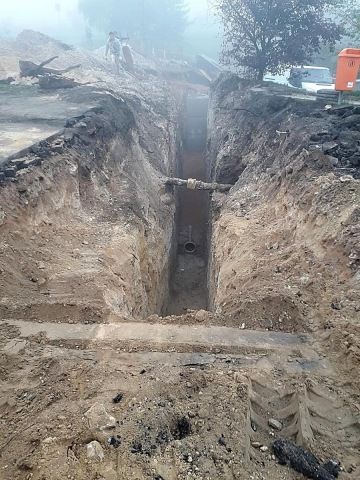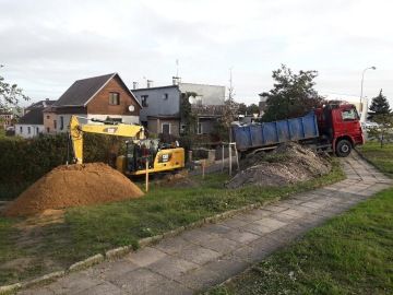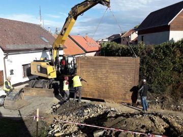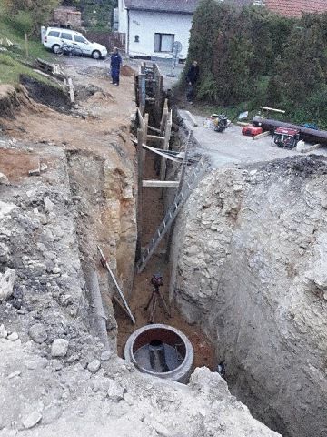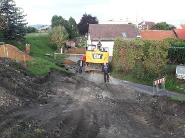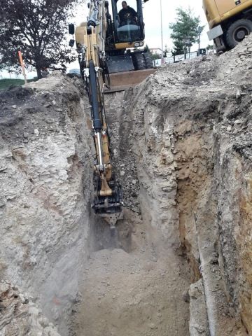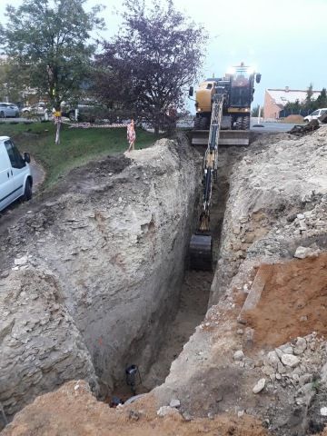 Tým zemních prácí se nyní podílí na výstavbě kanalizace v Mladé Boleslavi. Výkop se dělá v náročném terénu do hloubky cca 6 m, kde narážíme na skálu