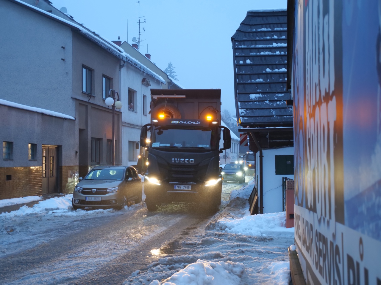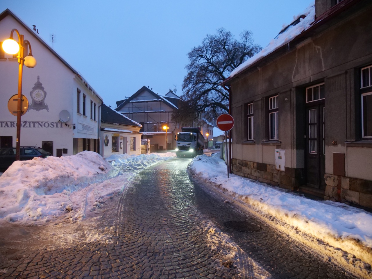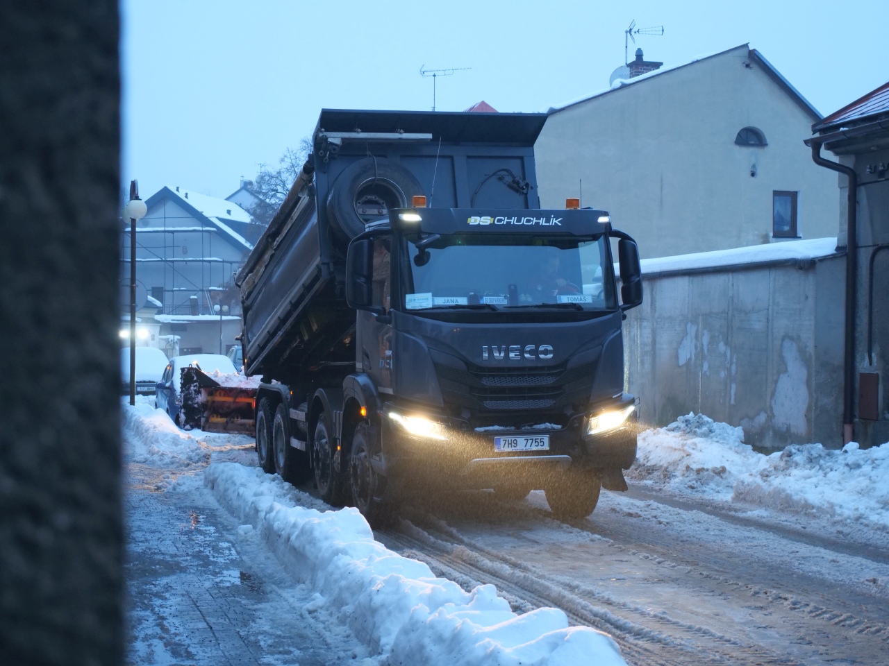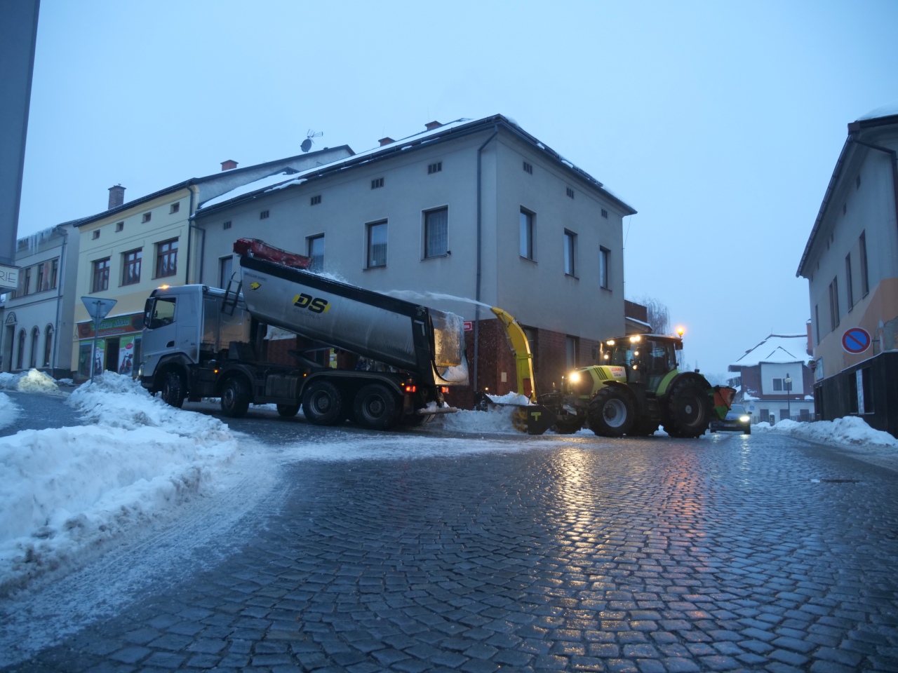 Odklízíme sníh z Dolení ulice
