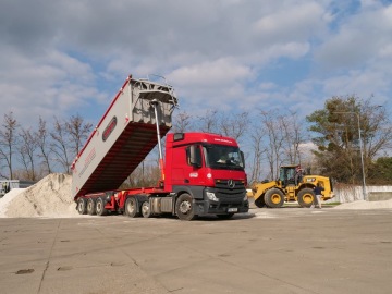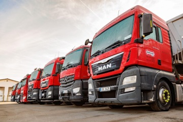 a logistickými službami. Naše sklápěčky mají objem 29-50 m³ a mají povolenou hmotnost nákladu až 33 t na tuzemských trasách